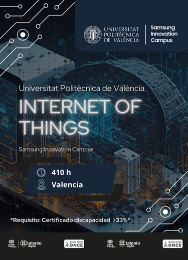 La formación en Internet of Things (IoT) desarrollada junto a la Universitat Politècnica de València (UPV) y con contenidos del Samsung Innovation Campus está orientada a la adquisición de competencias clave en tecnologías conectadas, uno de los ámbitos con mayor proyección en el mercado laboral actual.
